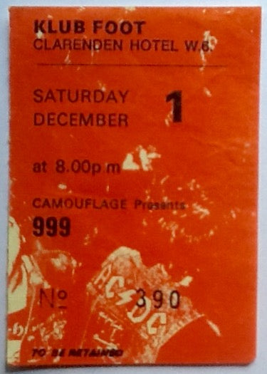 999 Original Used Concert Ticket Klub Foot Clarendon Hotel London 1984