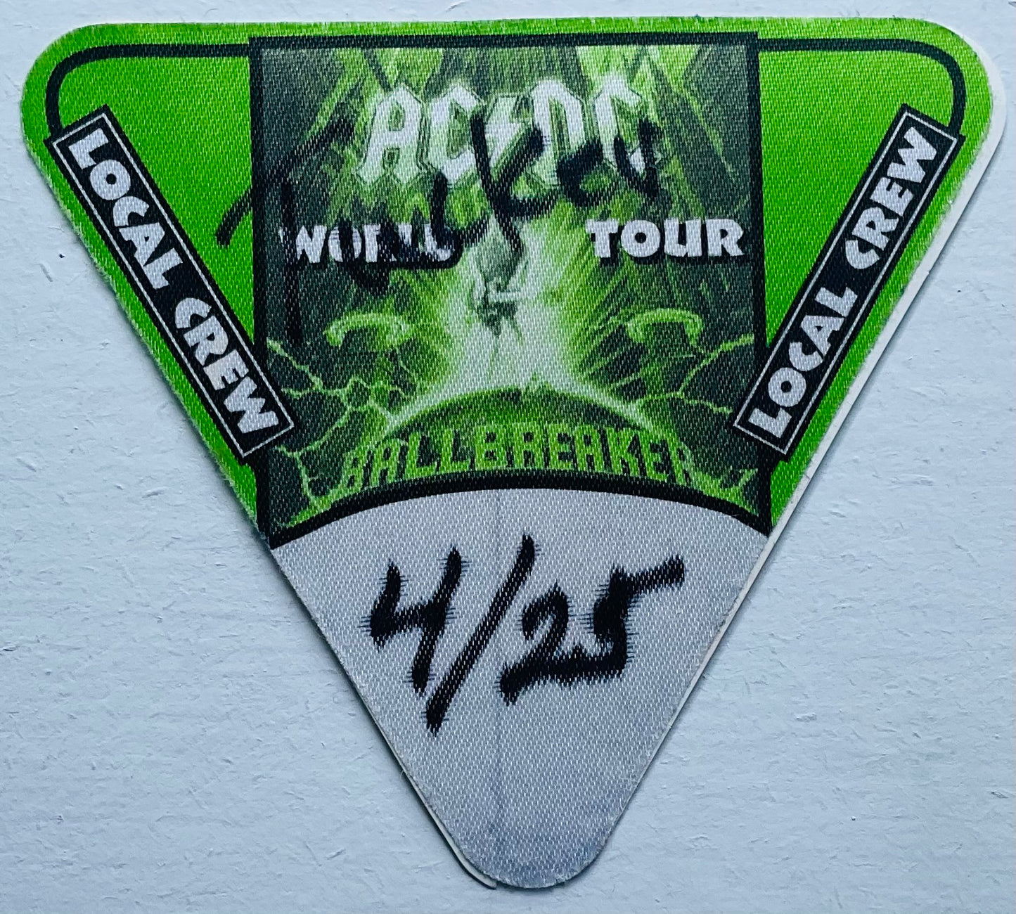 Additional Info : Original Green Local Crew Backstage Pass Ticket. Part of the ‘Ballbreaker Tour’.