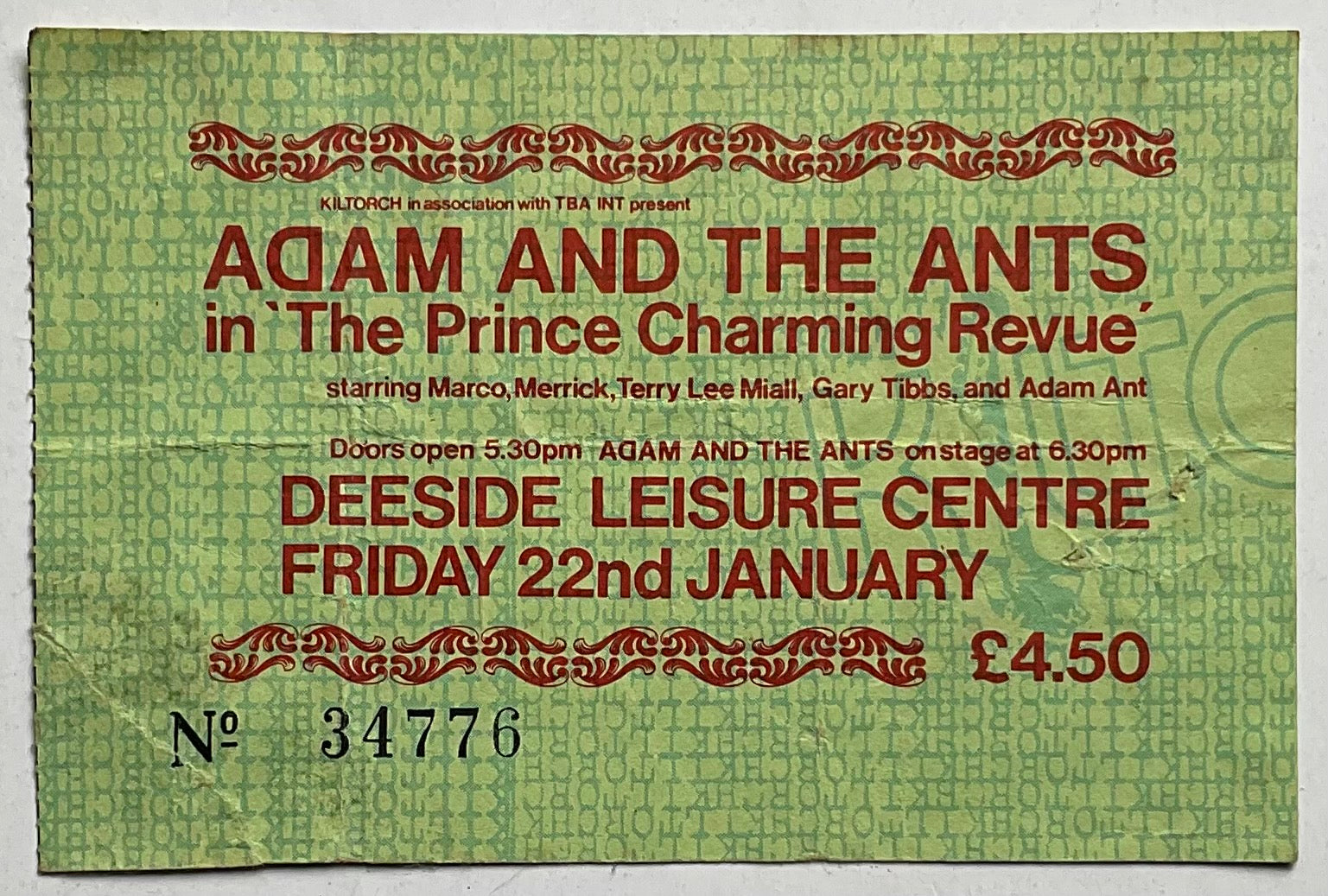 Adam and the Ants Original Used Concert Ticket Deeside Leisure Centre Queensferry 22nd Jan 1982