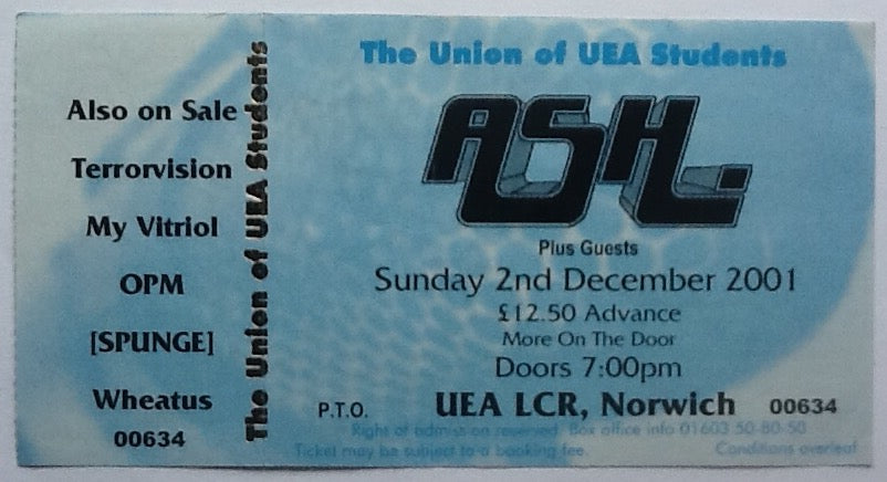 Ash Original Unused Concert Ticket UEA Norwich 2001