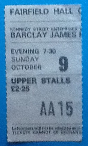 Barclay James Harvest Original Used Concert Ticket Croydon 1977