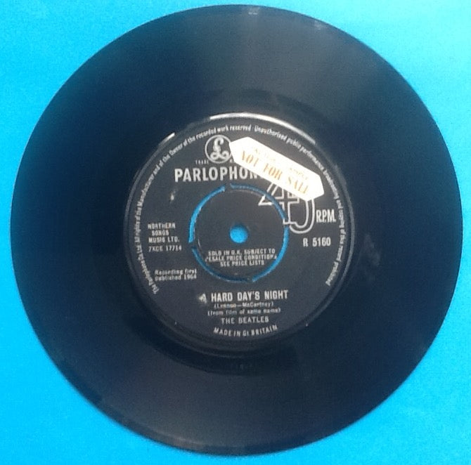 Additional Info : 2 track 7" Factory Sample Demo single. Red/ white 'Factory Sample Not For Sale' sticker stuck on 'A Hard Day's Night' side. Matrix Nos stamped into the run off grooves on both sides. 7XCE 17714-1N on the A side and 7XCE 17715-1N on the B side. KT Tax Codes. Originally owned by Freda Kelly and part of a collection I purchased from her many years ago. Housed in original Parlophone Company sleeve.