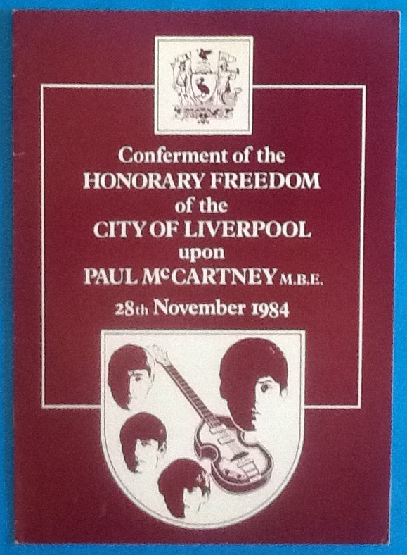 Additional Info : The Conferment of the Honary Freedom of the City of Liverpool upon Paul McCartney M.B.E. 8 page programme measures 11 3/4" x 8 5/8" with order of ceremony.