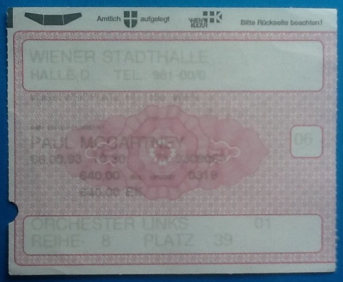 Beatles Paul McCartney Used Concert Ticket Vienna 1993