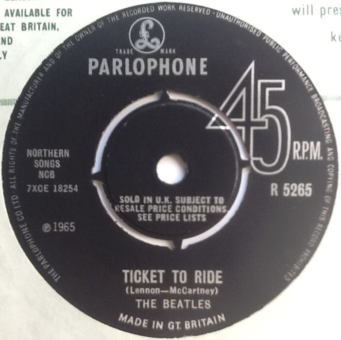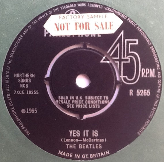 Beatles Ticket To Ride 2 Track 7" Factory Sample Promo Demo Vinyl Single UK 1965
