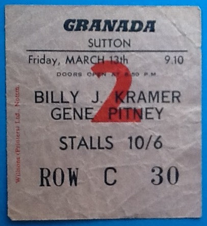 Billy J. Kramer Gene Pitney Original Used Concert Ticket Sutton 1964