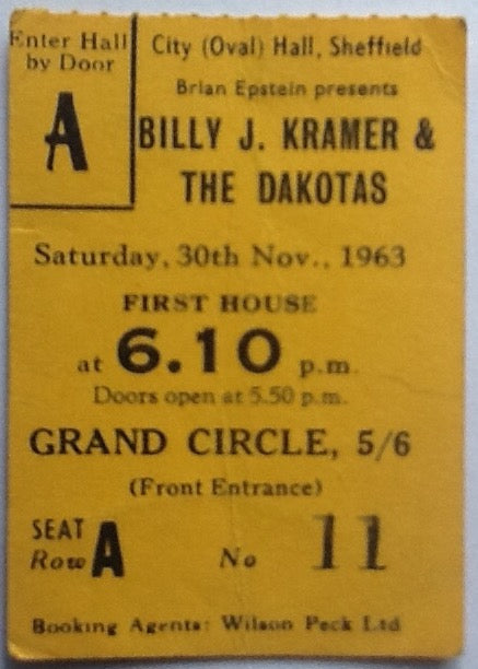 Billy J. Kramer Johnny Kidd Original Used Concert Ticket Sheffield 1963