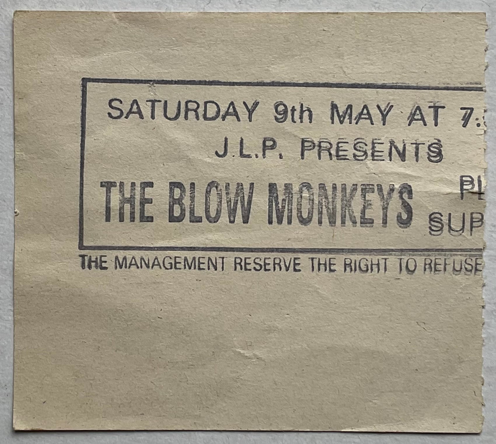 Blow Monkeys Original Used Concert Ticket Hammersmith Apollo London 9th May 1987