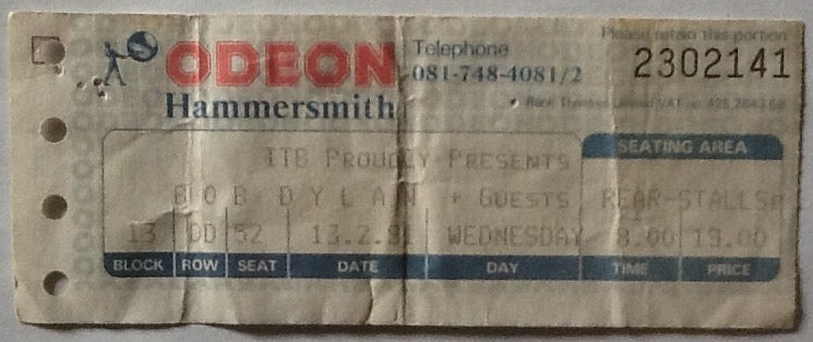 Bob Dylan Original Used Concert Ticket Hammersmith Odeon London 1991