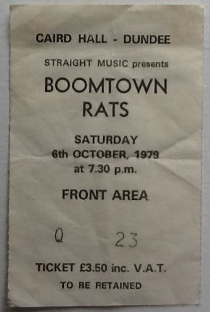 Boomtown Rats Original Used Concert Ticket Caird Hall Dundee 1979