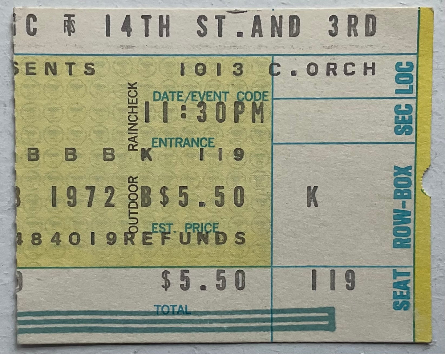 Boz Scaggs Wishbone Ash Original Used Concert Ticket Academy of Music New York 13th Oct 1972