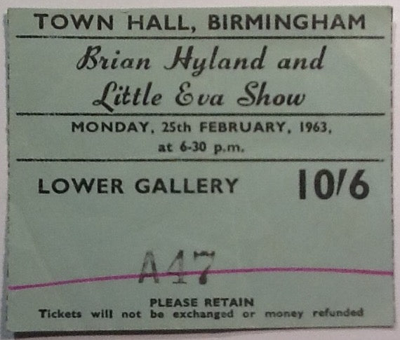 Brian Hyland and Little Eva Show Original Used Concert Ticket Birmingham 1963