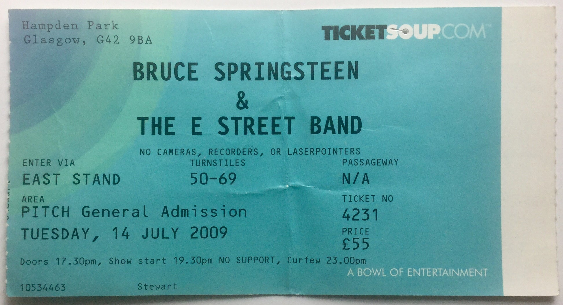 Bruce Springsteen Original Used Concert Ticket Hampden Park Glasgow 14th July 2009