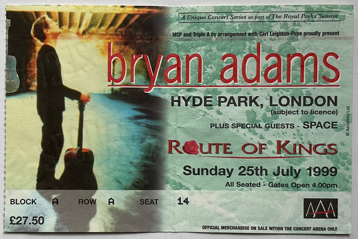 Bryan Adams Original Used Concert Ticket Hyde Park London 25th Jul 1999