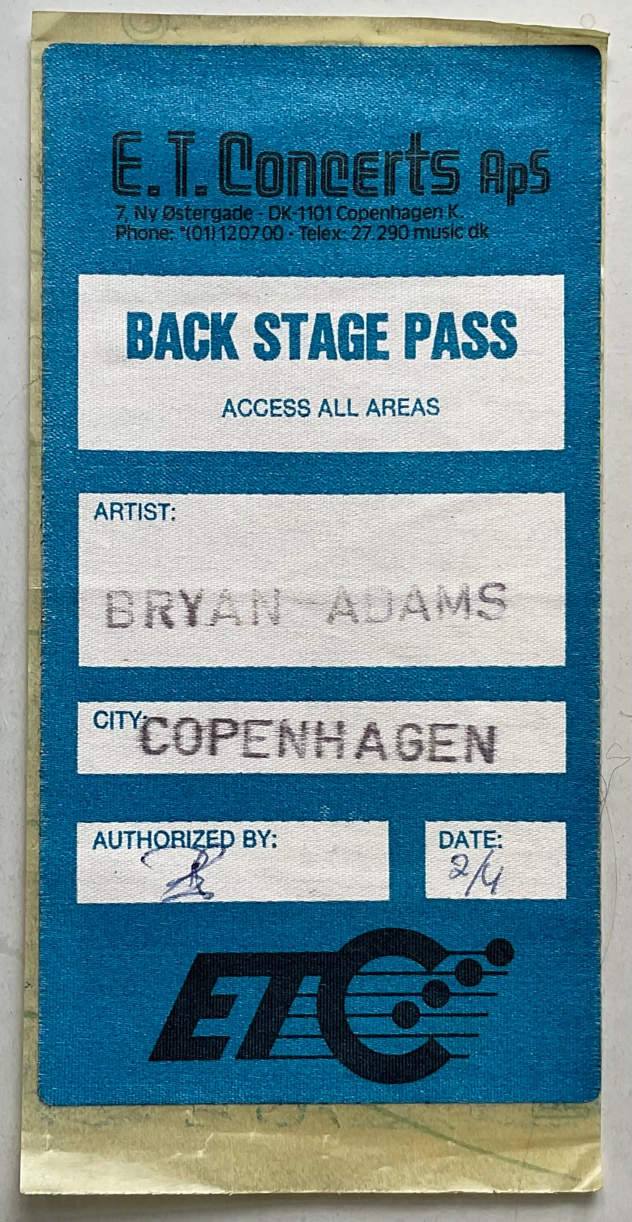 Bryan Adams Tina Turner Original Unused Concert Backstage Pass Ticket  Falkonerteatret Copenhagen 24th Feb 1985