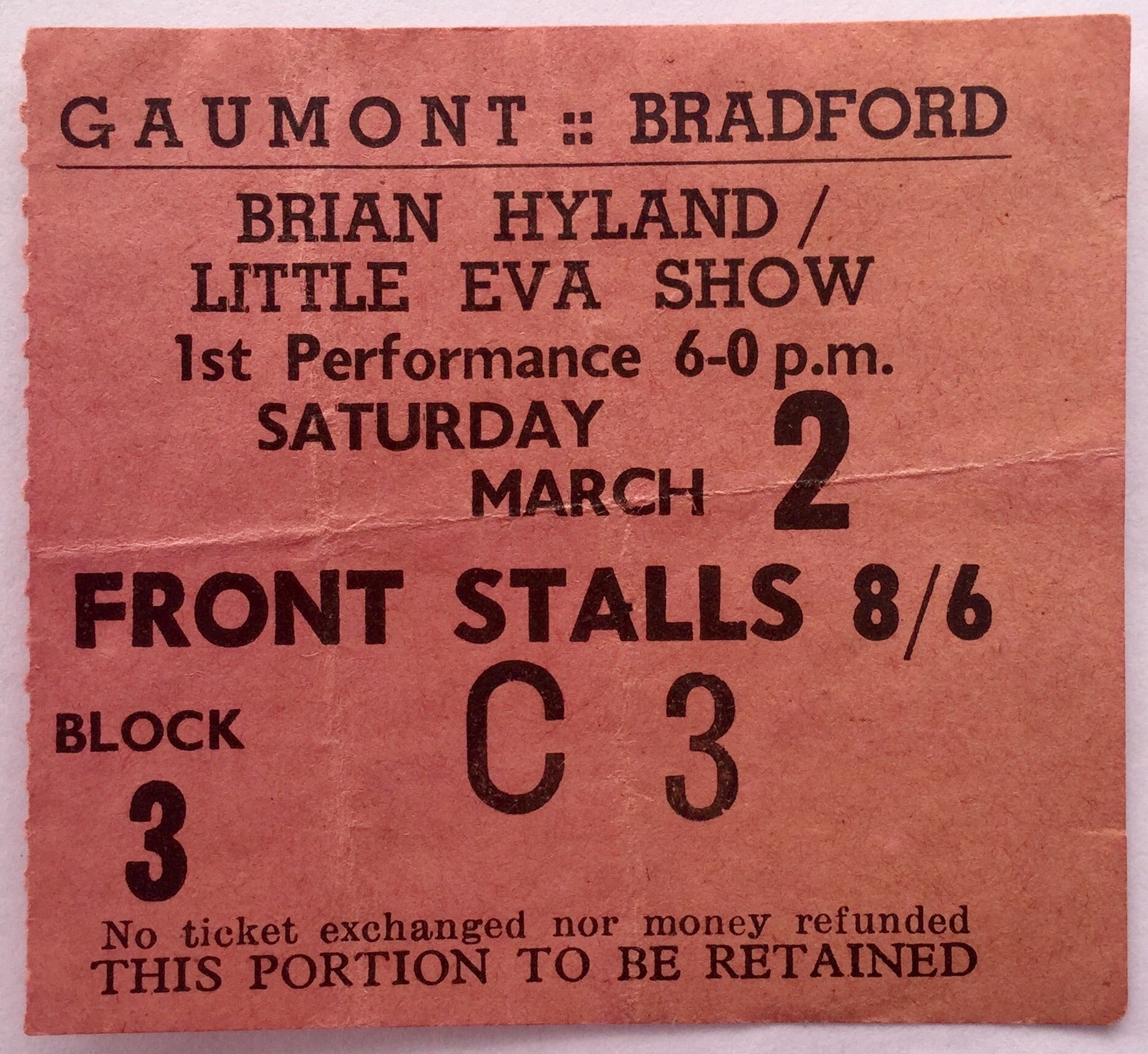 Bryan Hyland Little Eva Original Used Concert Ticket Gaumont Theatre Bradford 2nd March 1963