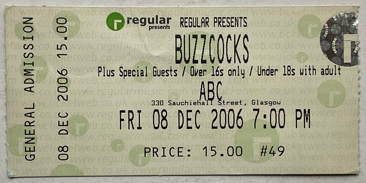 Buzzcocks Original Used Concert Ticket ABC Glasgow 8th Dec 2006