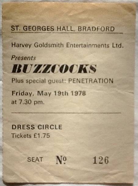 Buzzcocks Penetration Original Used Concert Ticket St Georges Hall Bradford 1978