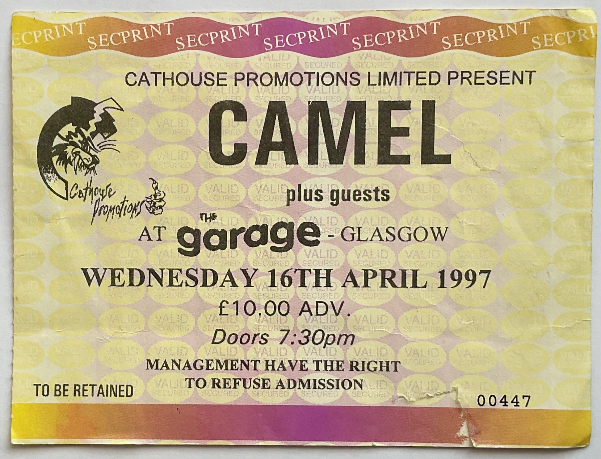 Camel Original Used Concert Ticket Garage Glasgow 16th Apr 1997