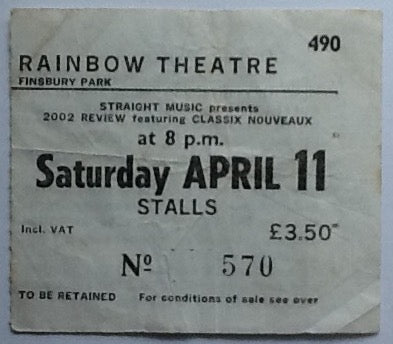 Classix Nouveaux Original Used Concert Ticket Rainbow Theatre London 1981