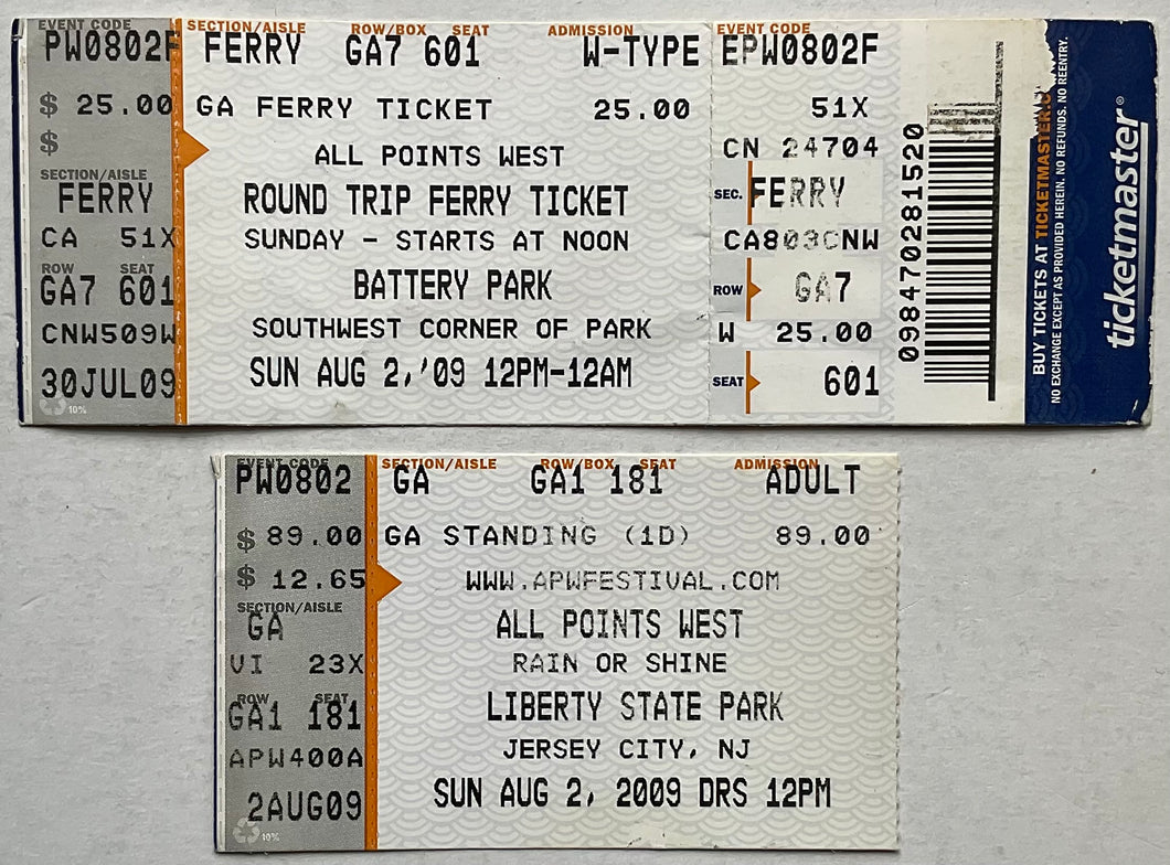Coldplay Echo & The Bunnymen Original Used Concert Ticket & Ferry Ticket Liberty State Park New Jersey 2nd Aug 2009