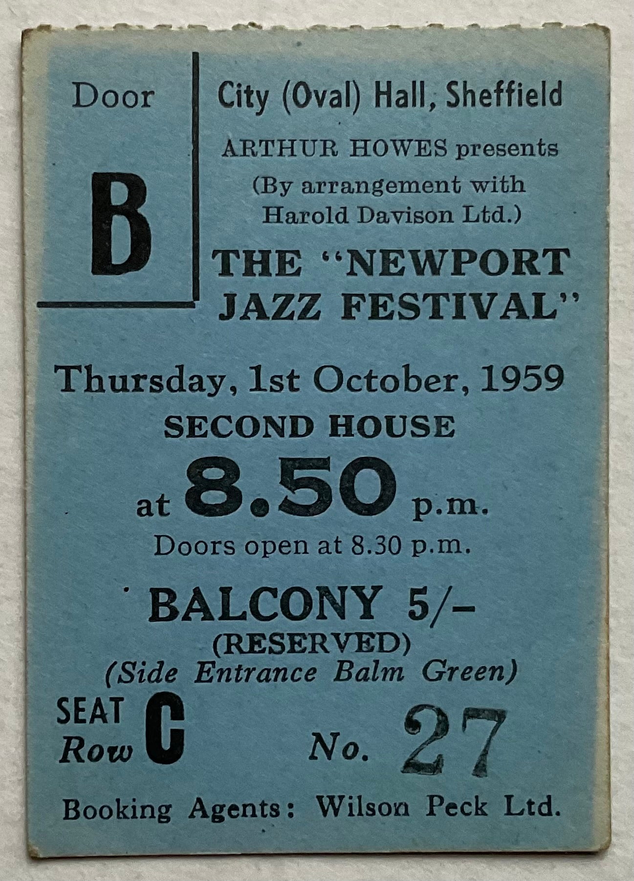 Dave Brubeck Dizzy Gillespie Original Used Concert Ticket Newport Jazz Festival City Hall Sheffield 1959