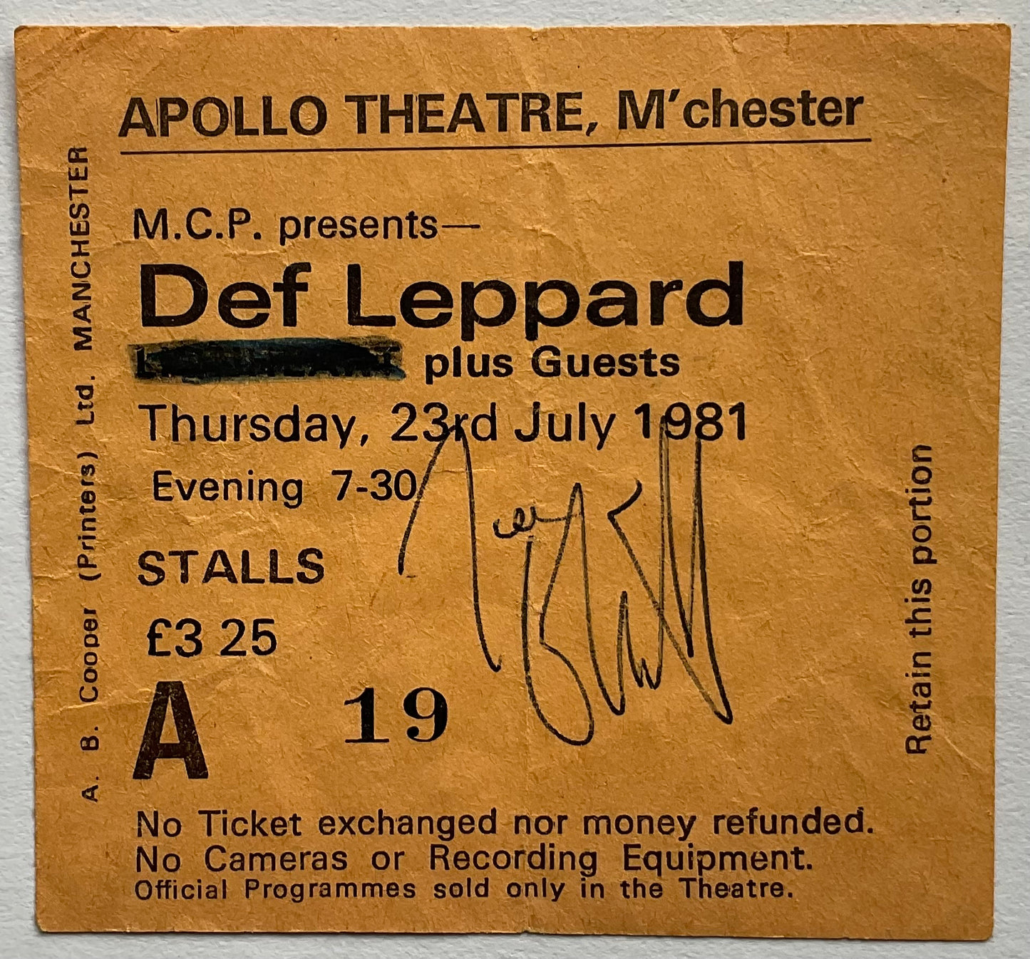 Def Leppard Original Used Concert Ticket Apollo Theatre Manchester 23rd Jul 1981