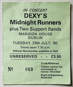 Dexys Midnight Runners Original Used Concert Ticket Mansion House Dublin 29th Jul 1980
