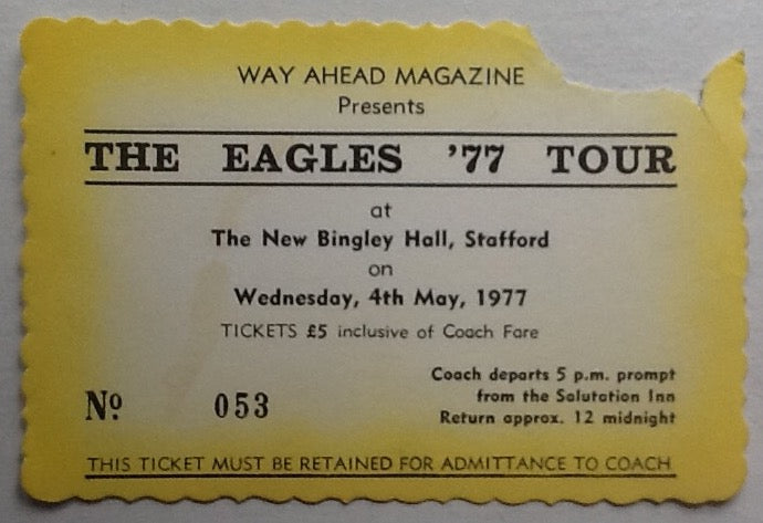 Eagles Original Used Concert & Coach Ticket Ticket New Bingley Hall Stafford 1977
