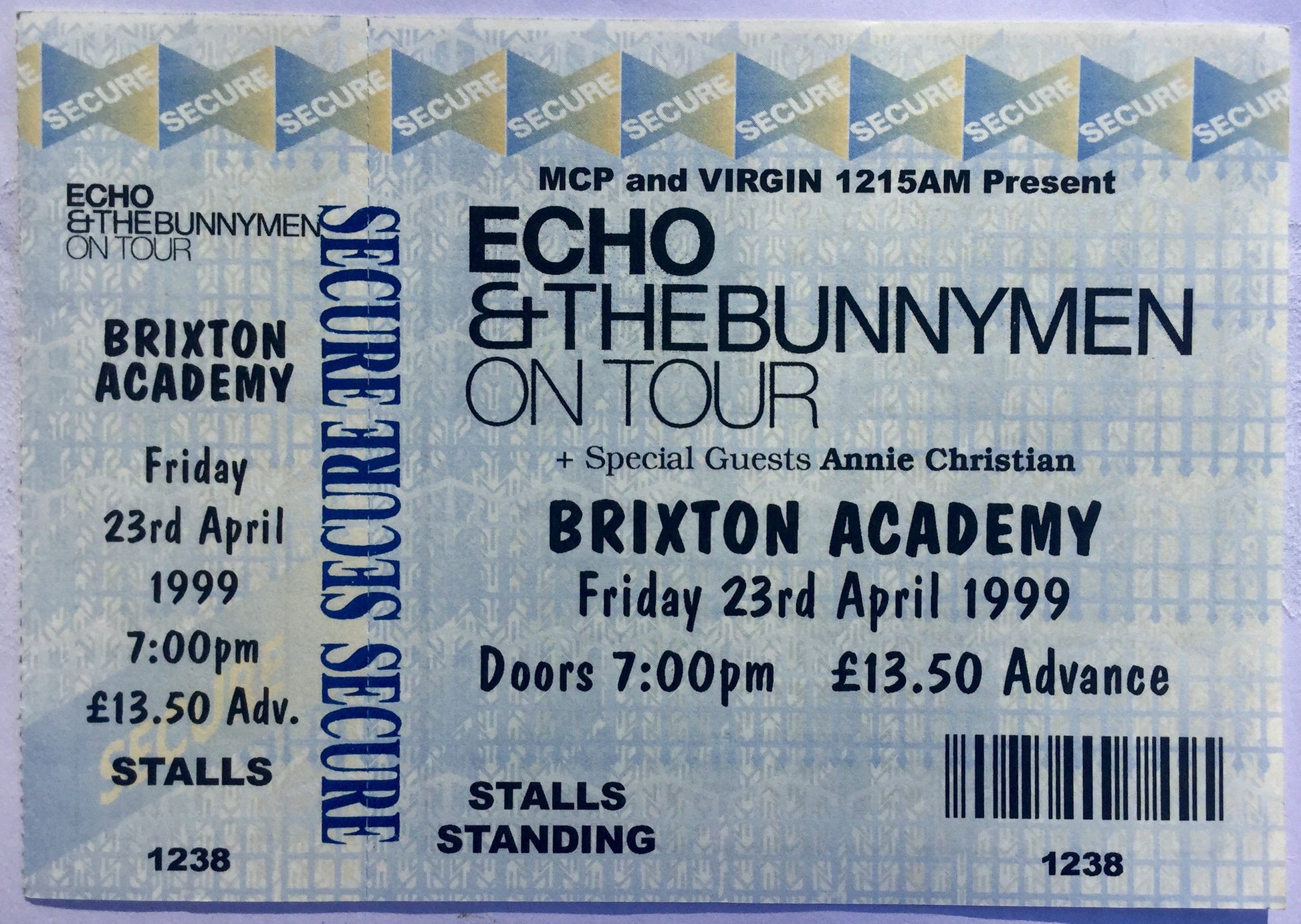 Echo & The Bunnymen Original Unused Concert Ticket Brixton Academy London 23rd April 1999