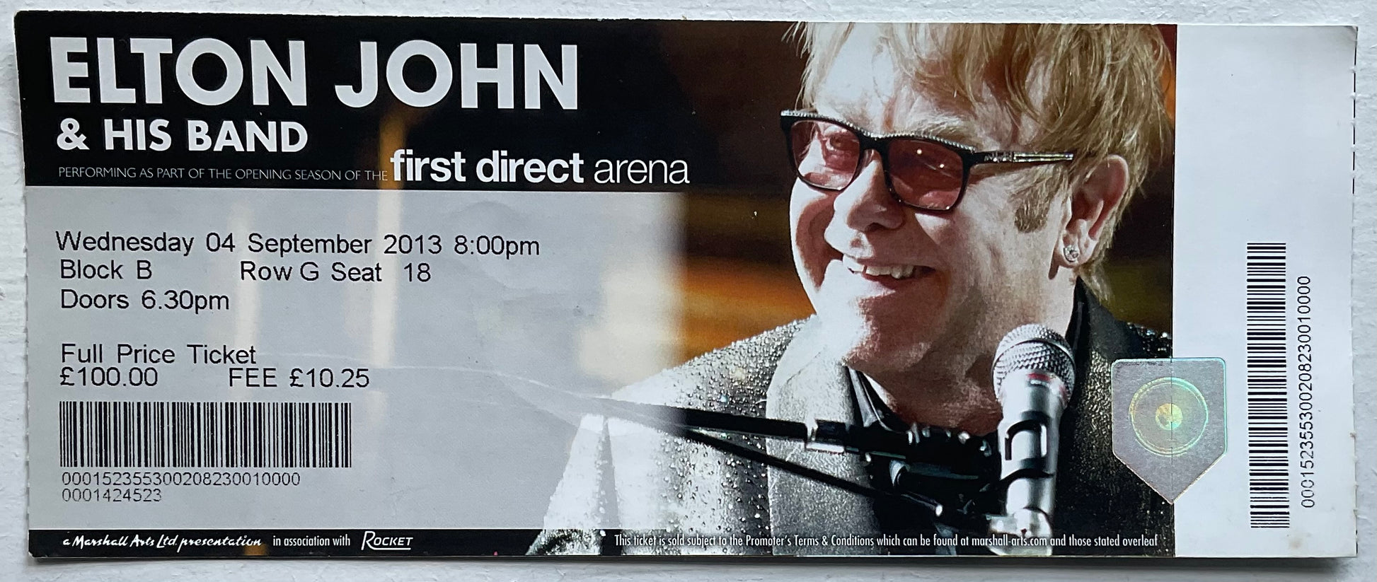 Elton John Original Unused Concert Ticket First Direct Arena Leeds 4th Sep 2013