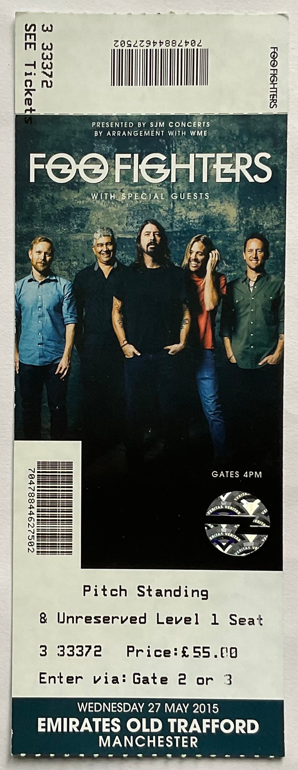 Foo Fighters Original Unused Concert Ticket Emirates Old Trafford Manchester 27th May 2015