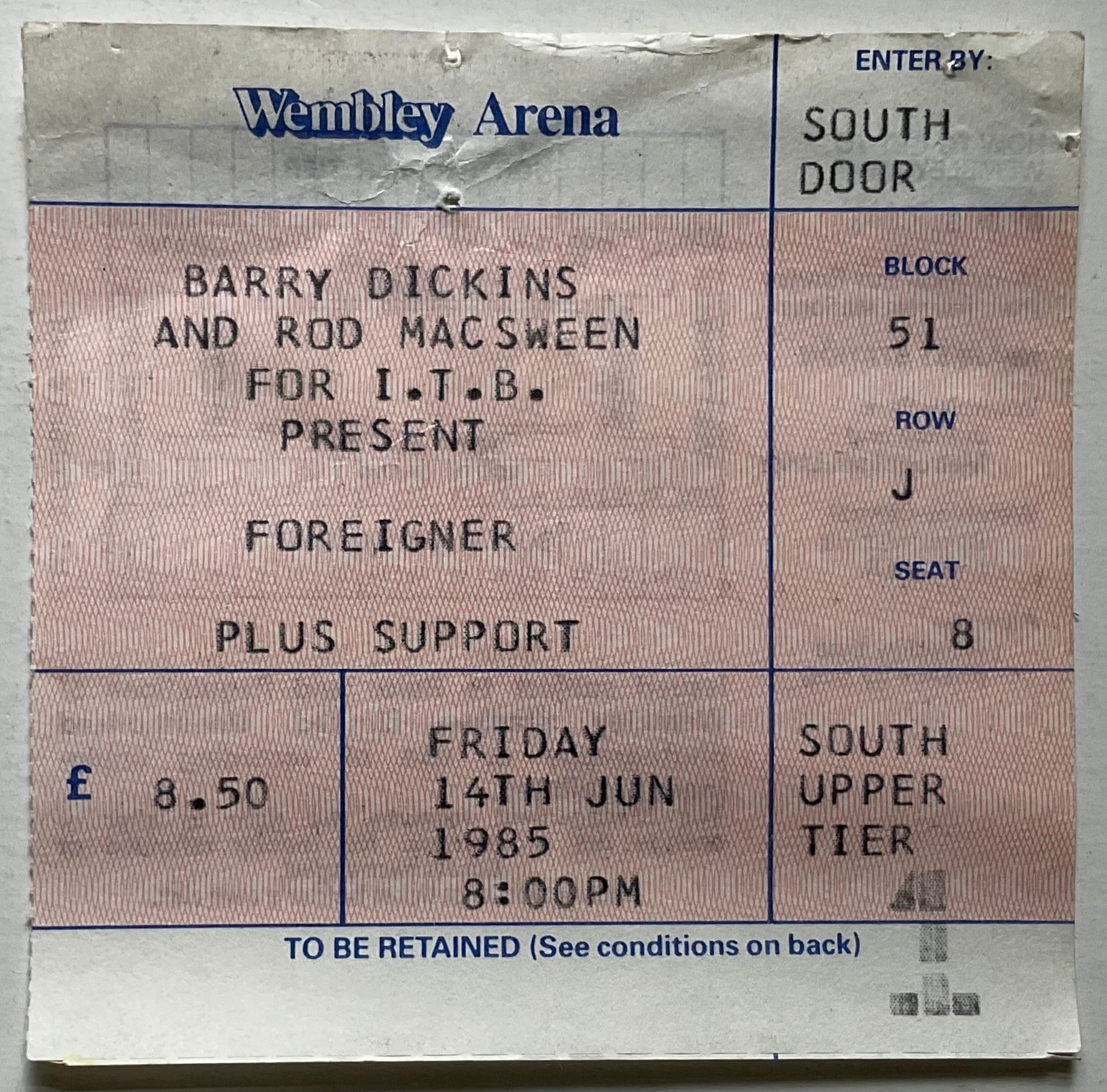 Foreigner Original Used Concert Ticket Wembley Arena London 14 June 1985