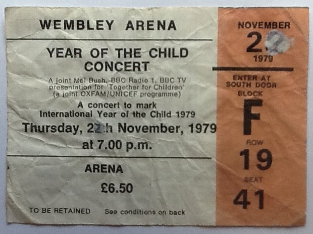 Additional Info : Block F ticket Row 19 Seat 41. Year of the Child Concert.