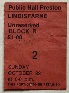 Genesis Lindisfarne Original Used Concert Ticket Public Hall Preston 22nd Oct 1972