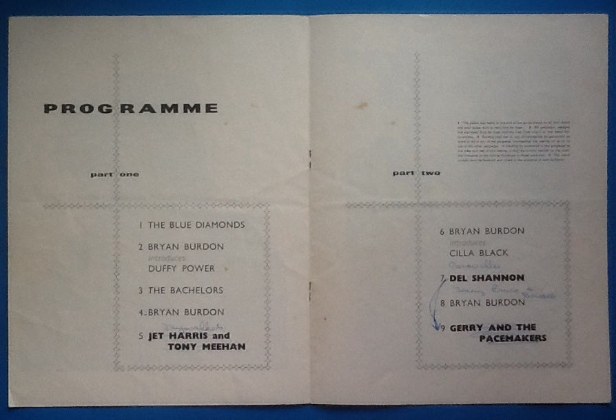 Artists : Gerry and the Pacemakers, Del Shannon, Jet Harris, Tony Meehan, The Bachelors, Cilla Black, Duffy Power
