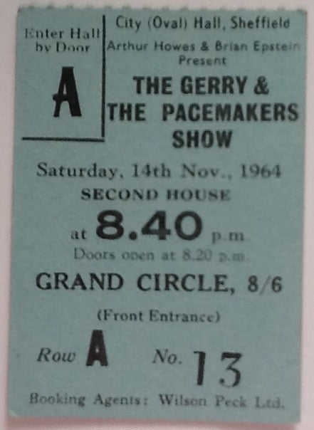 Gerry & the Pacemakers Kinks Original Used Concert Ticket Sheffield 1964
