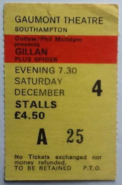 Gillan Original Used Concert Ticket Southampton 4th Dec 1982 Deep Purple