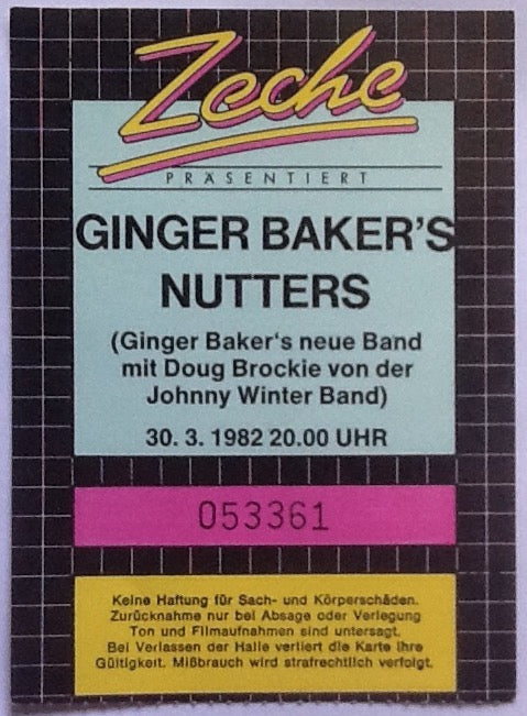 Ginger Baker’s Nutters Original Used Concert Ticket Colliery Bochum 1982