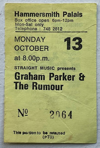 Graham Parker Original Used Concert Ticket Hammersmith Palais London 13th Oct 1980