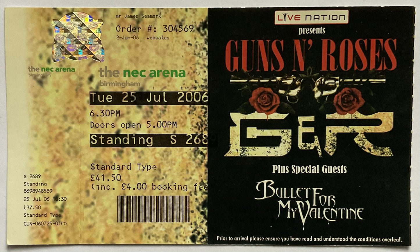 Guns N’ Roses Original Unused Concert Ticket NEC Arena Birmingham 25th Jul 2006