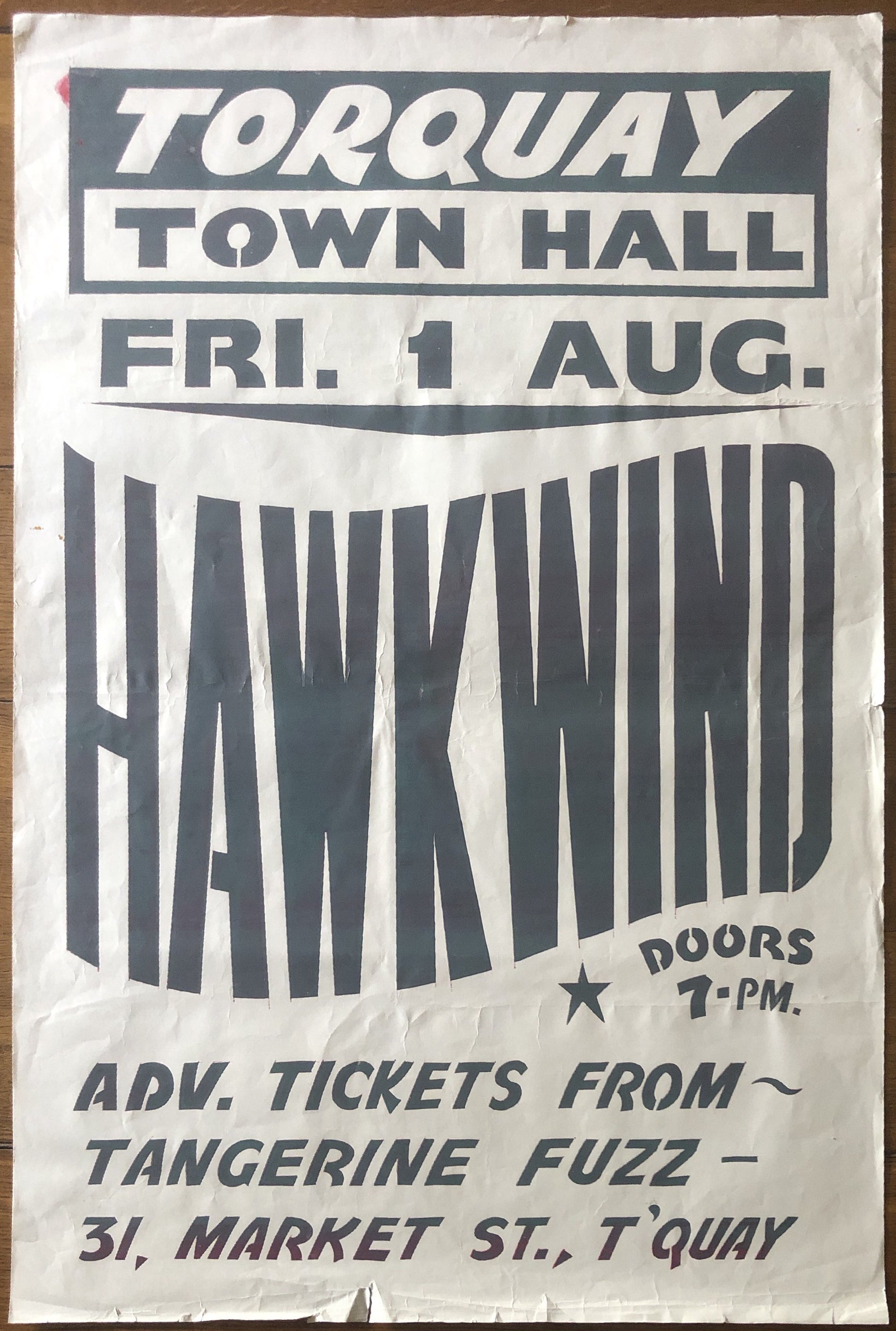 Hawkwind Original Green-white Concert Tour Gig Poster Town Hall Torquay 1975