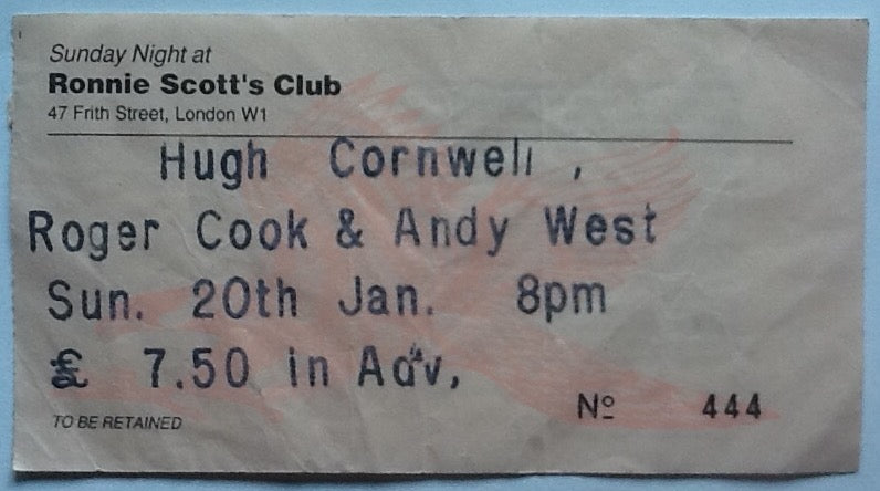 Hugh Cornwell Roger Cook Andy West Original Used Concert Ticket Ronnie Scott's Club London 1991