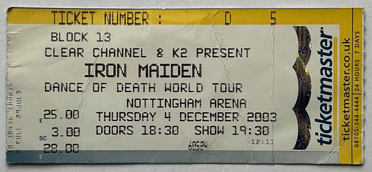 Iron Maiden Original Used Concert Ticket Nottingham Arena 4th Dec 2003