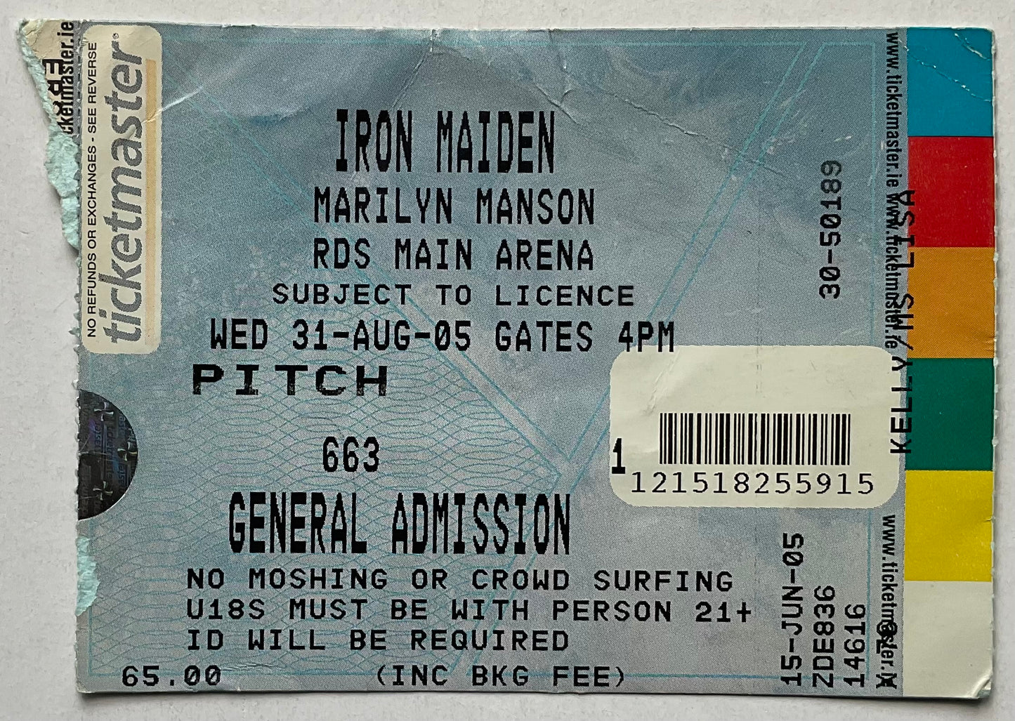Iron Maiden Original Used Concert Ticket RDS Arena Dublin 31st Aug 2005