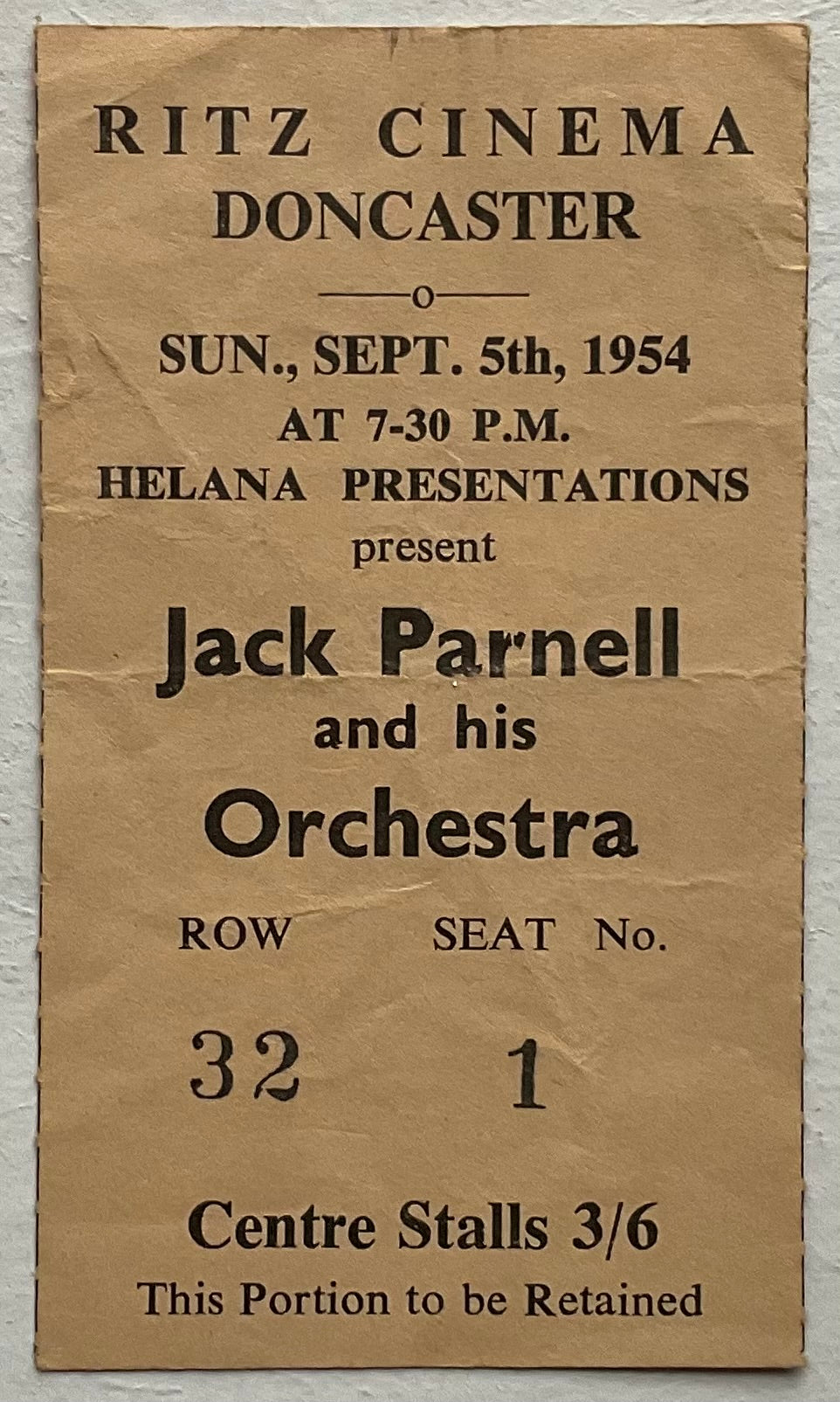 Jack Parnell Original Used Concert Ticket Ritz Doncaster 5th Sep 1954