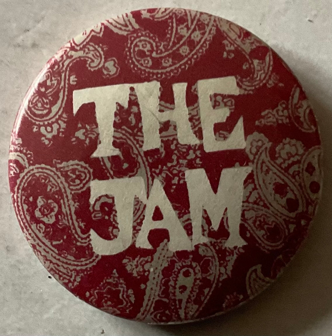 An original The Jam paisley button pin back badge purchased from the official merchandising stall at the concert. The badge measures 1” in diameter and is in excellent condition with some light tarnishing on the inside.