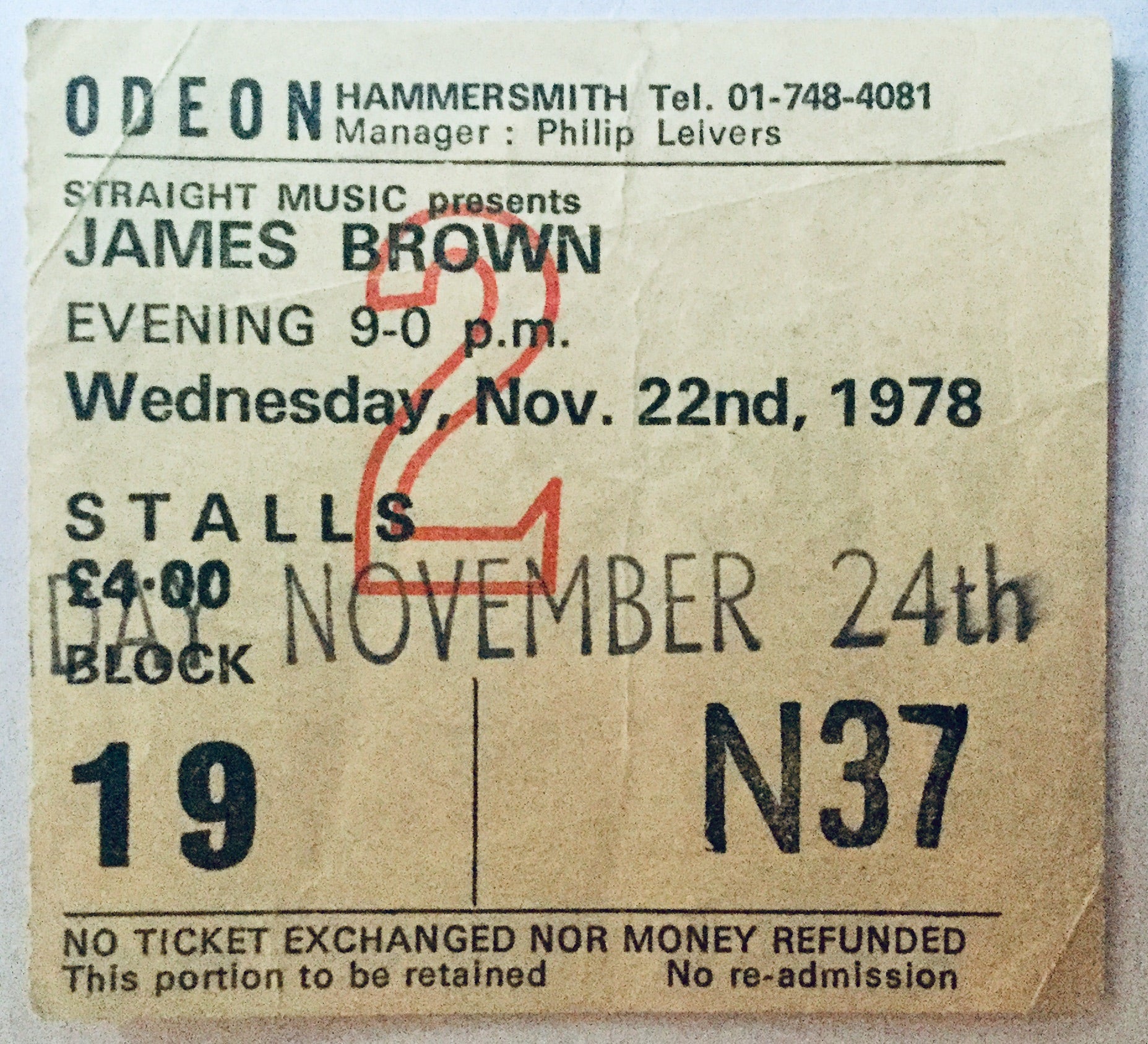 James Brown Original Used Concert Ticket Hammersmith Odeon London 24th Nov 1978