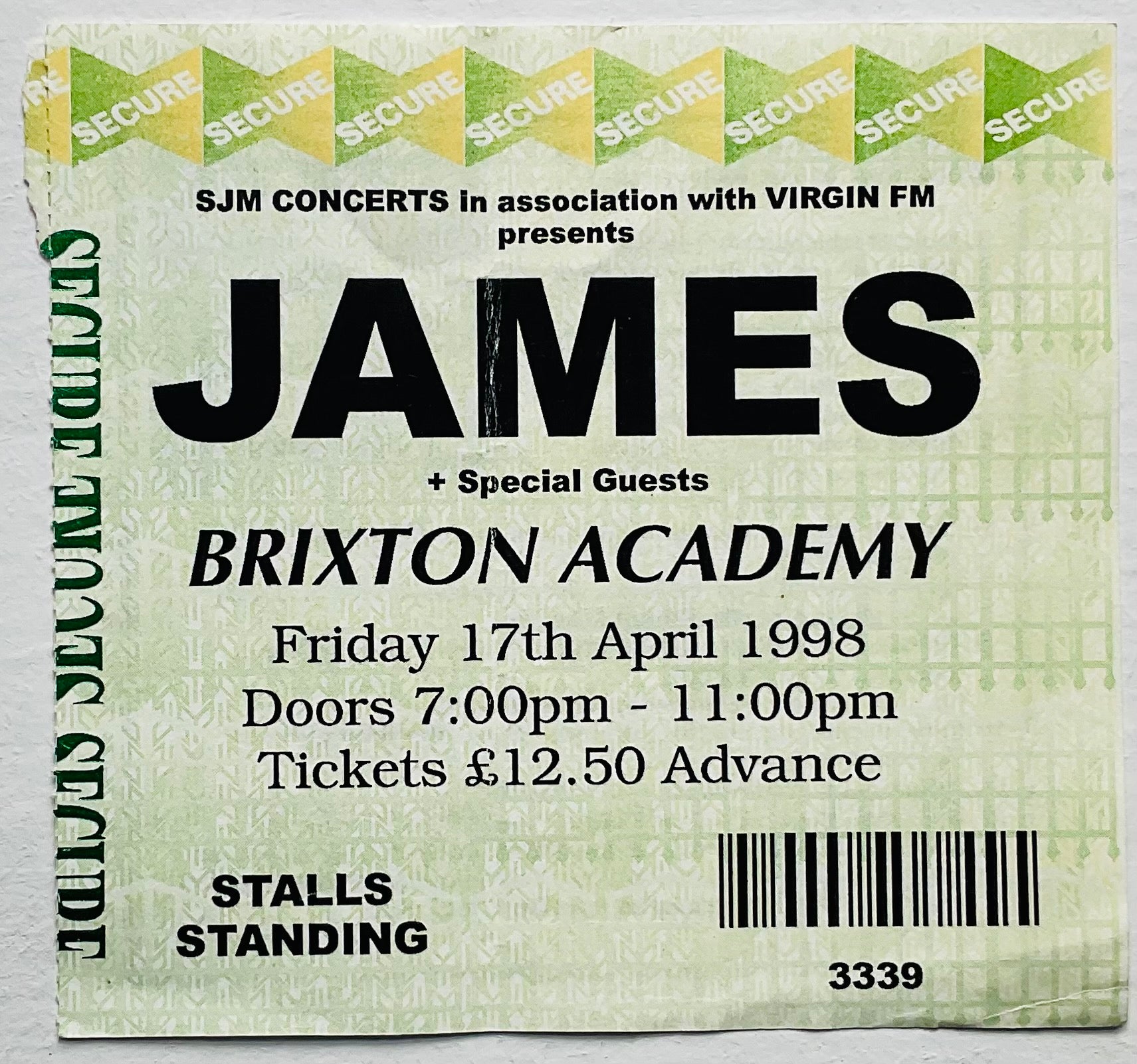 James Original Used Concert Ticket Brixton Academy London 17th Apr 1998