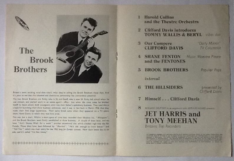 Artists : Jet Harris and Tony Meehan, Tommy Wallis & Beryl, Shane Fenton and the Fentones, The Hillsiders, Brook Brothers,